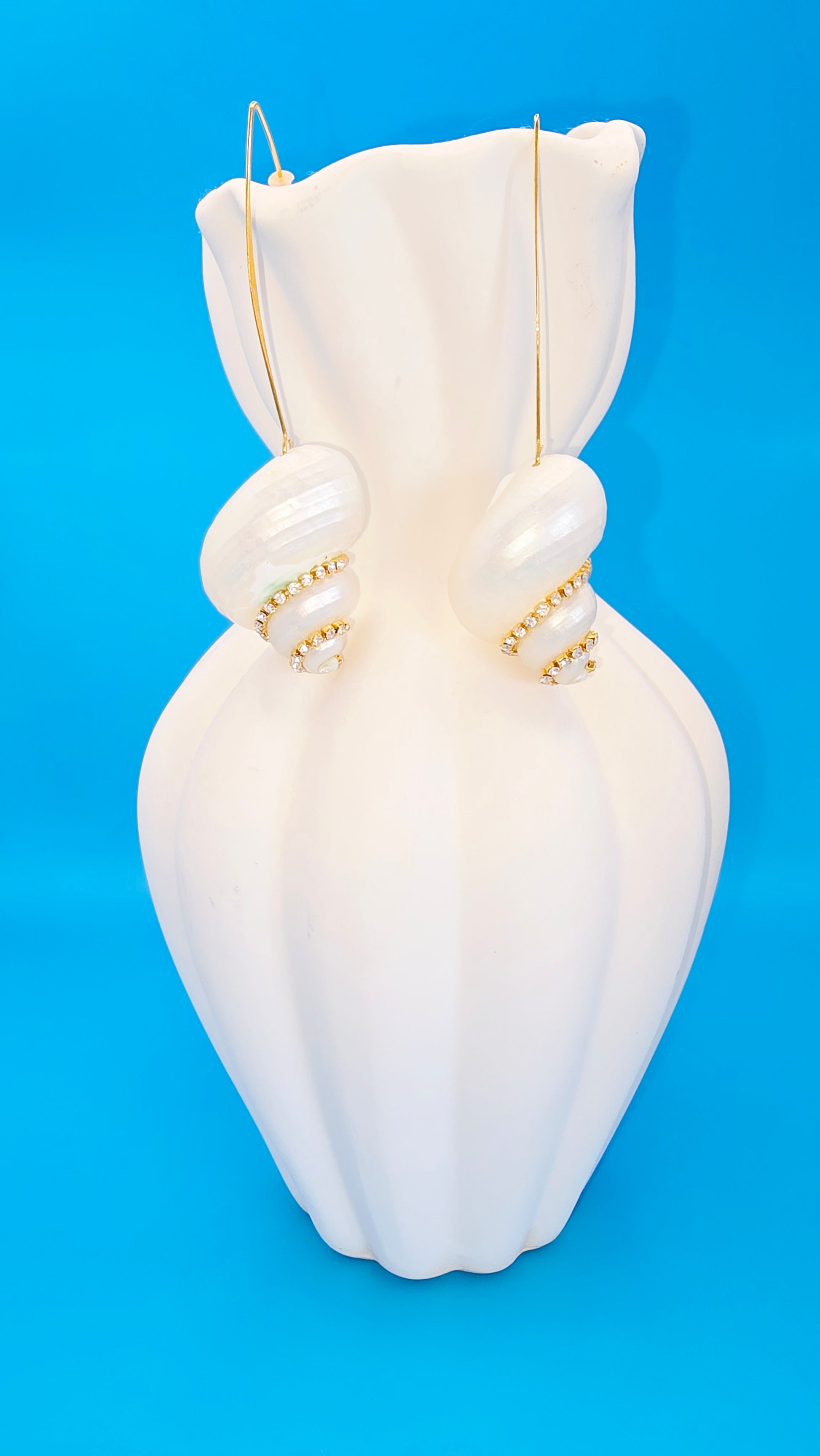 Bring a touch of seaside glamour to every outfit with our Capri Shell Earrings. Featuring natural white shells set on gold hooks and finished with a hint of sparkling crystals, these earrings are effortless, light, and chic.