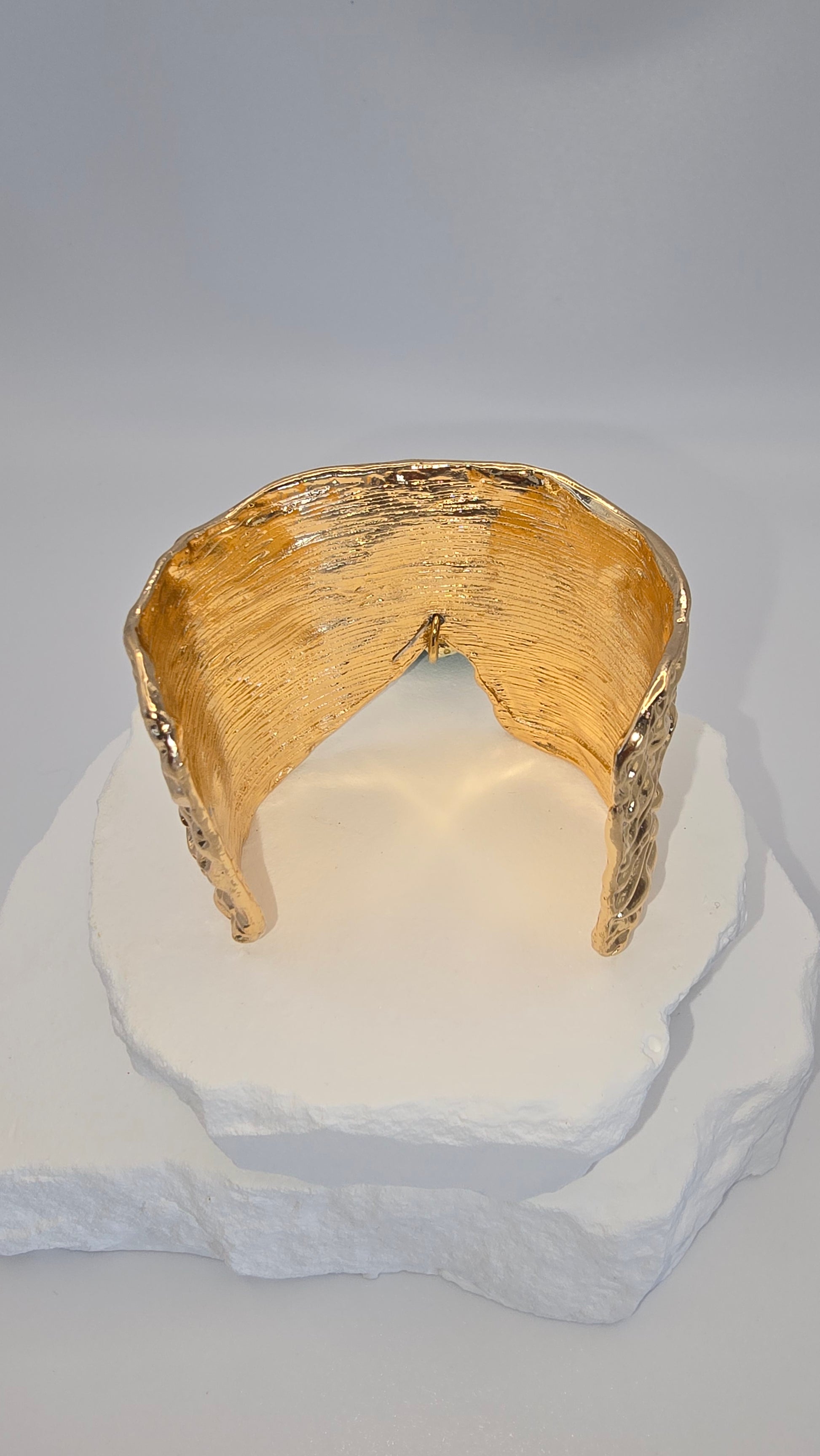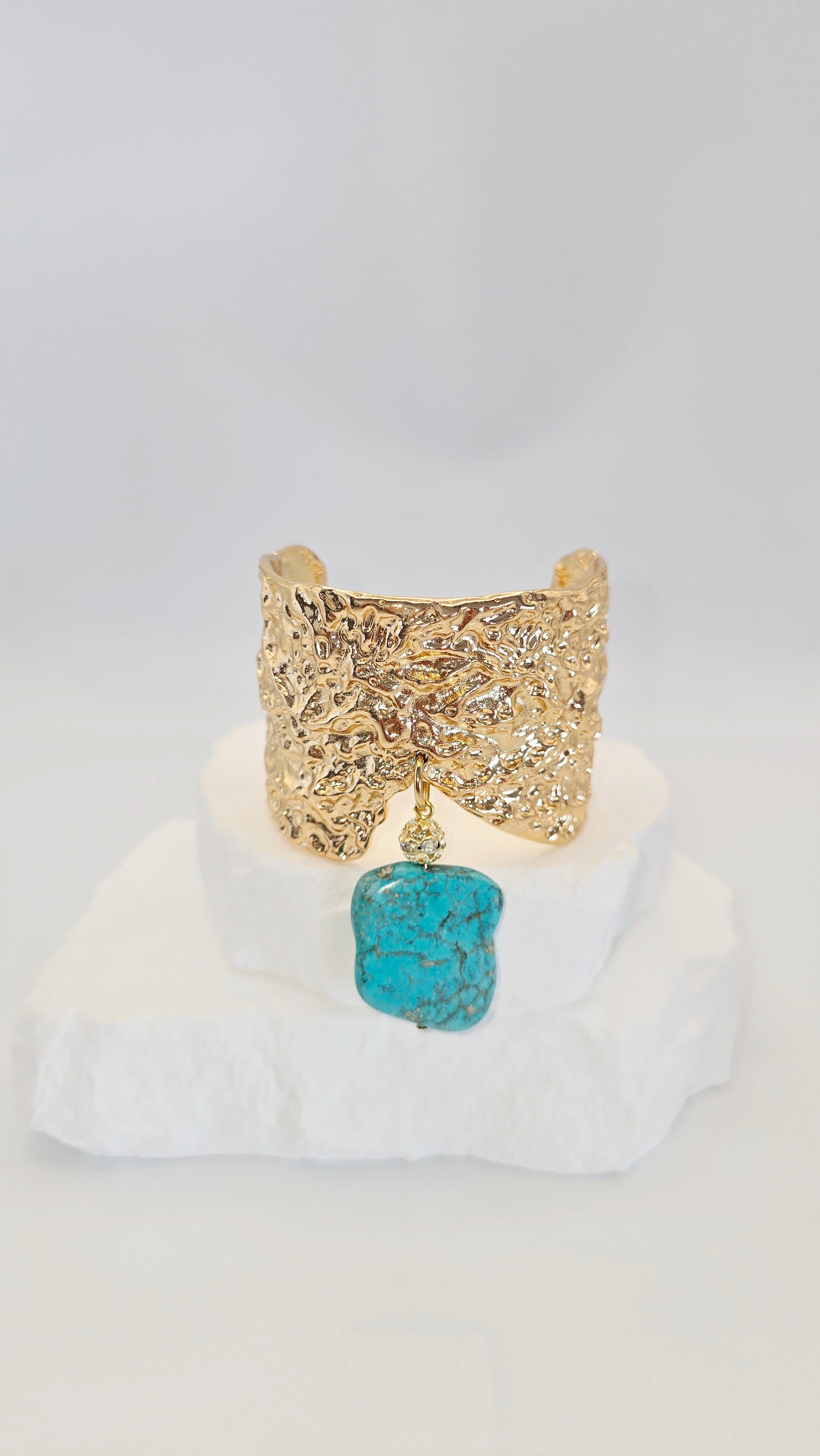 Bold yet elevated, this cuff is designed for the woman who wants her jewelry to feel both statement-making and wearable. The organic textures of the gold meet the raw beauty of turquoise, creating a piece that feels contemporary, chic, and undeniably powerful.